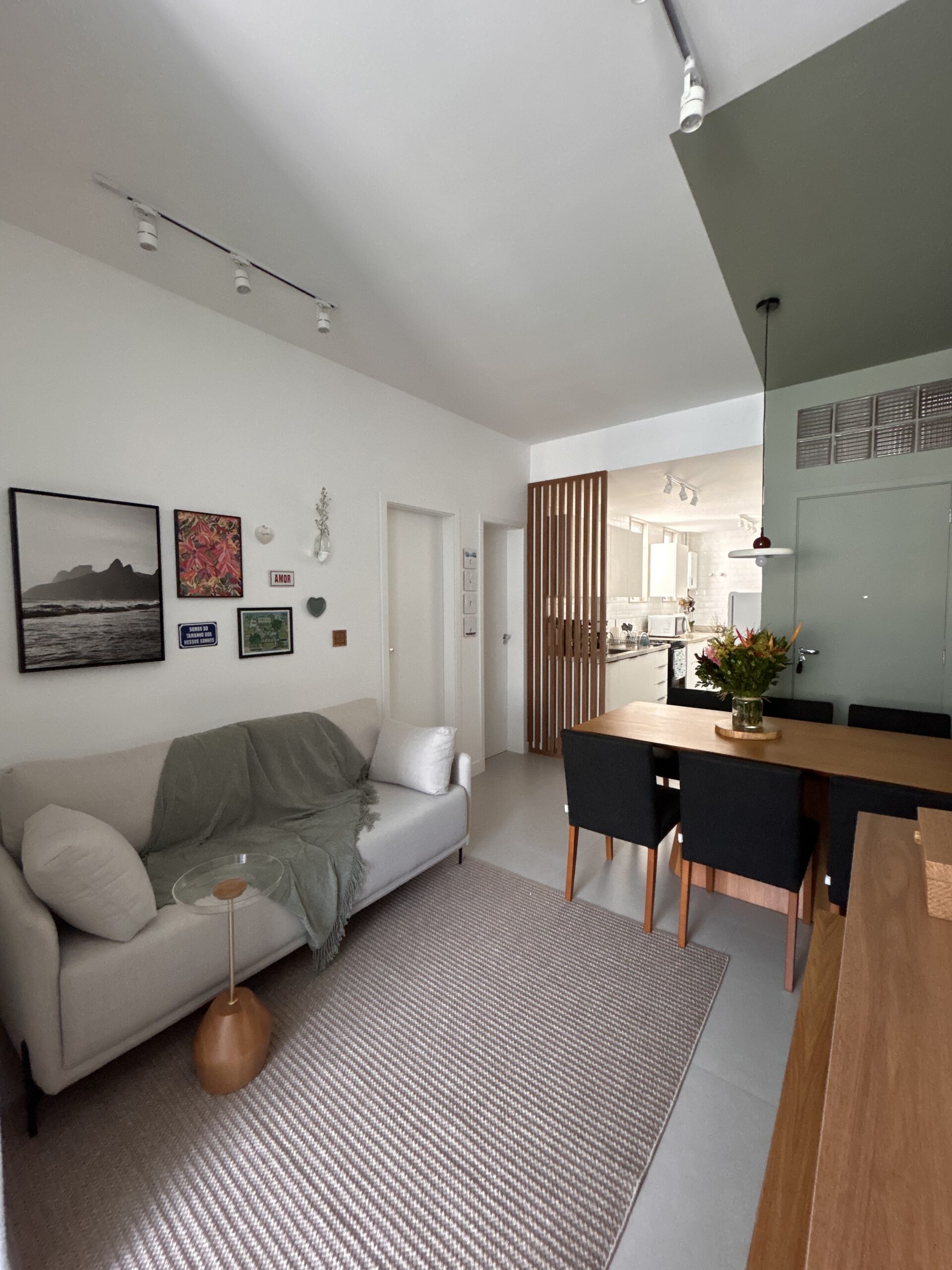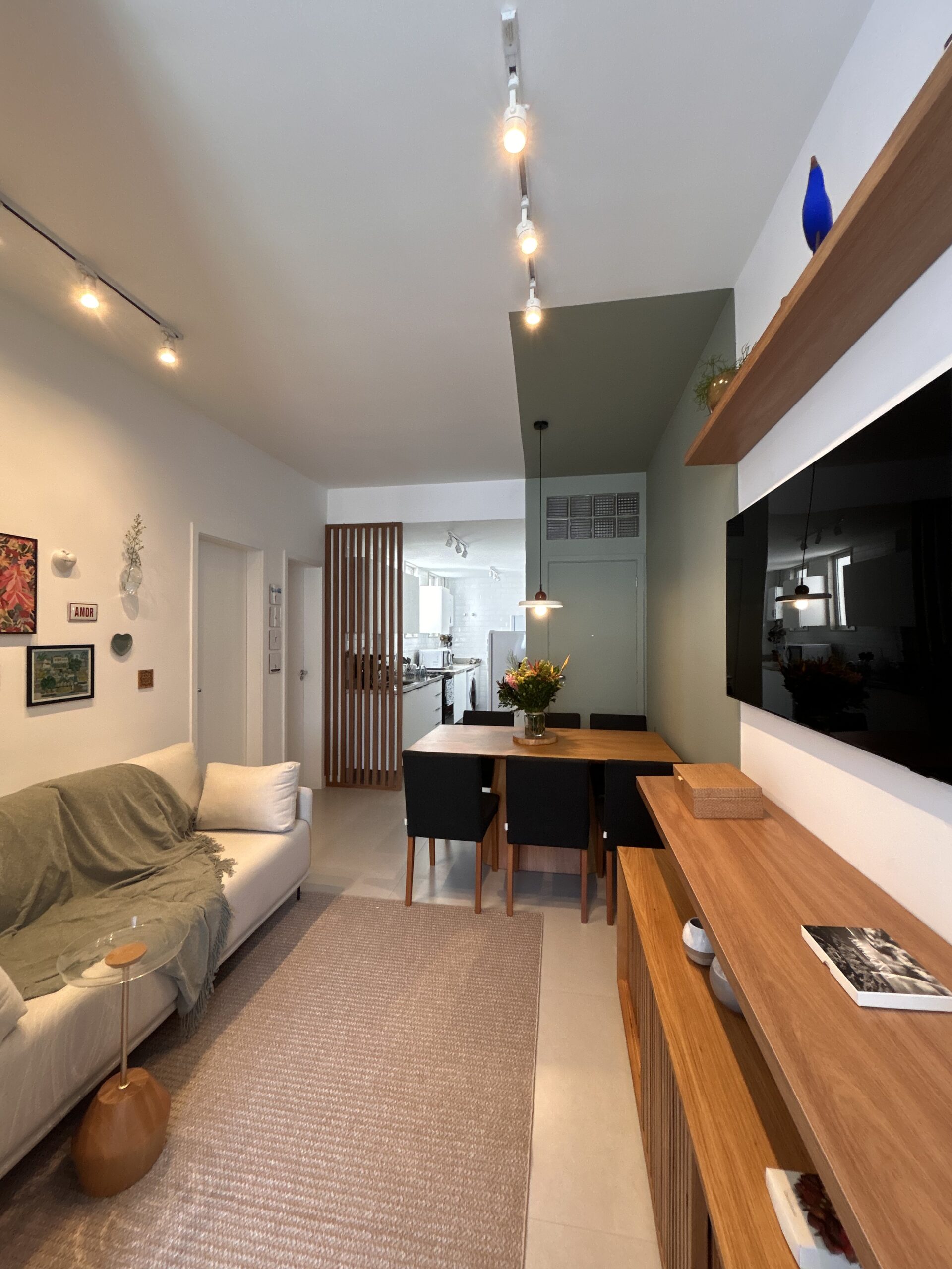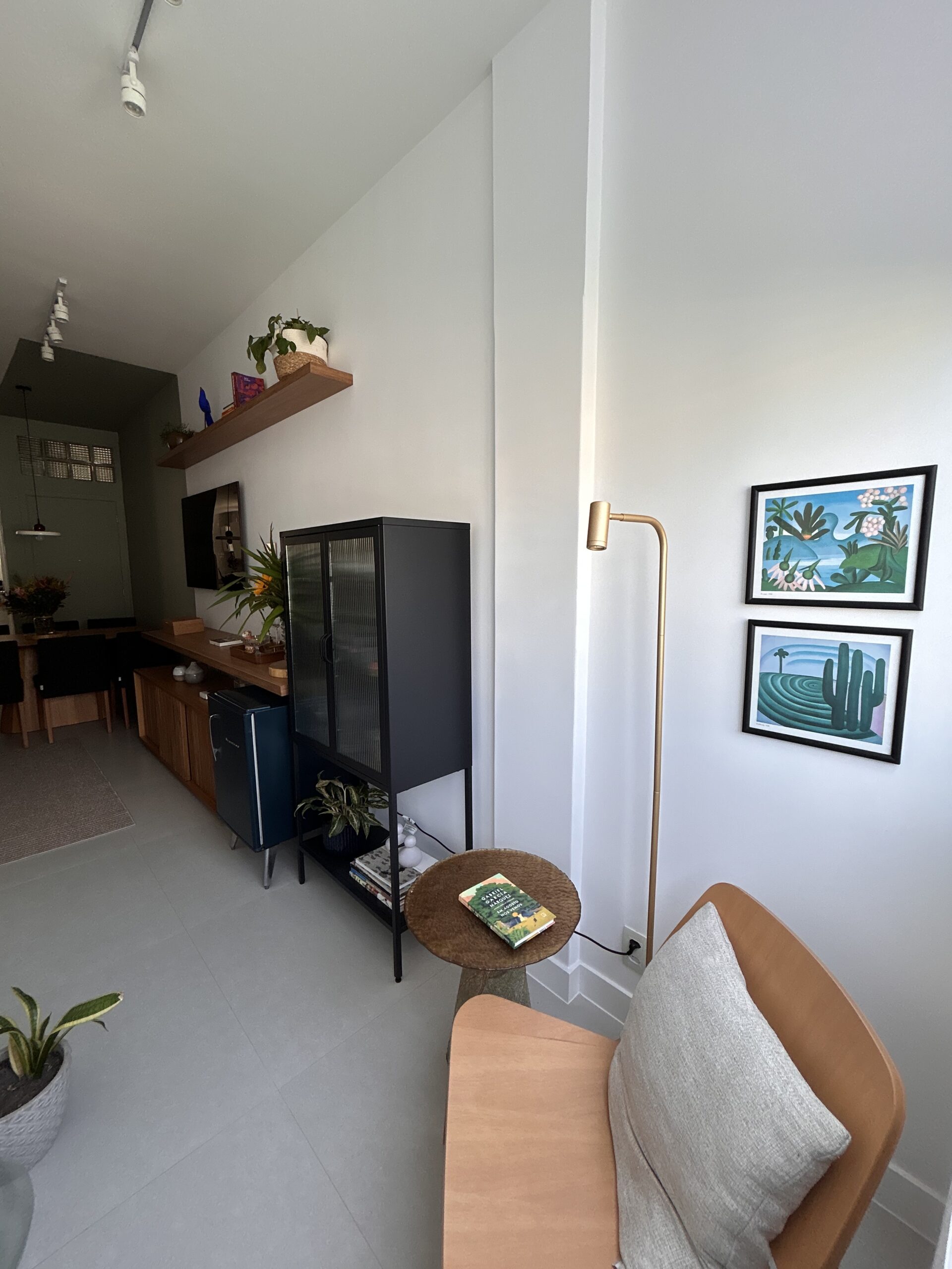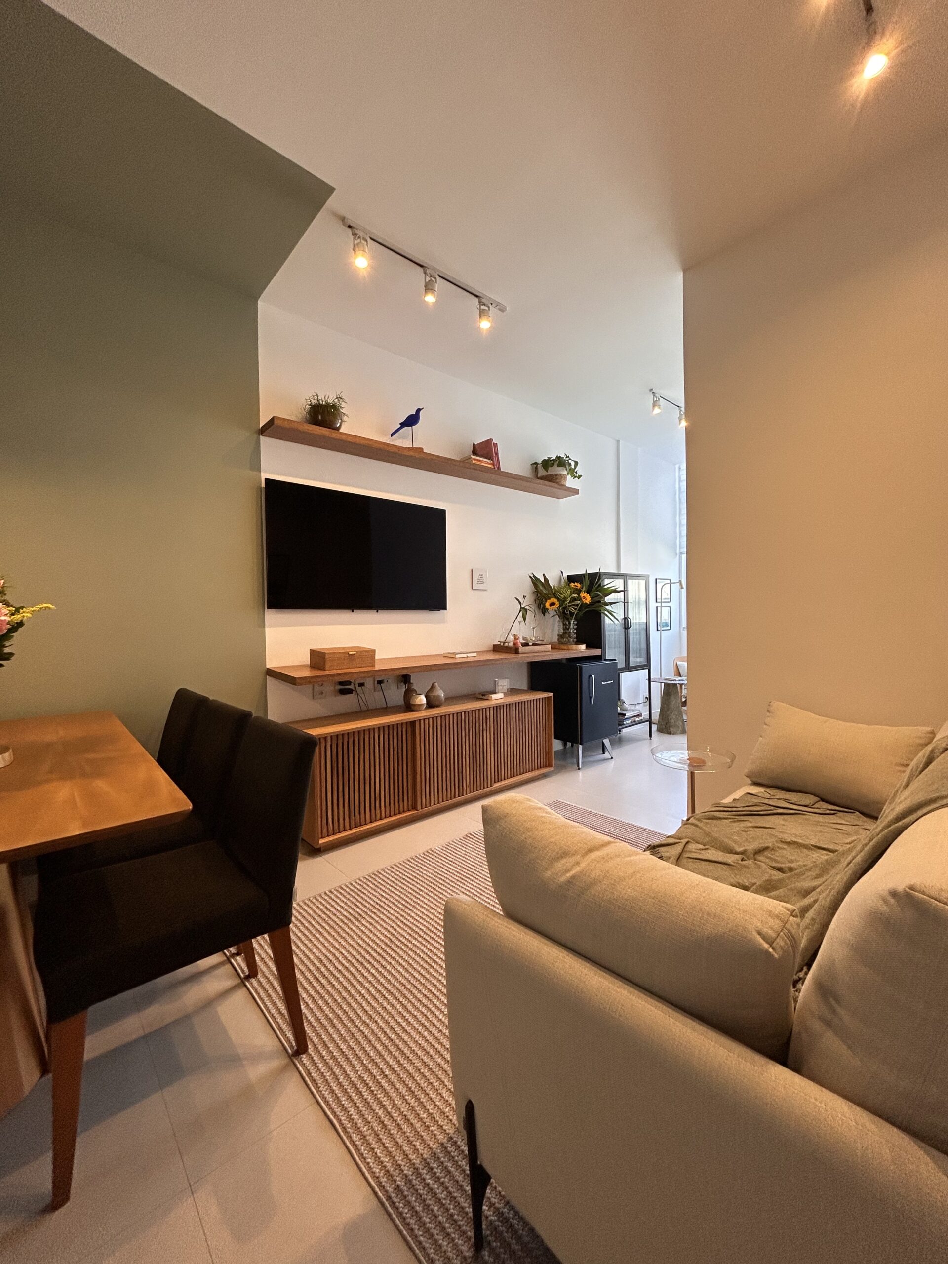 O resultado é uma sala compacta, mas cheia de vida, onde cada escolha reforça a ideia central do projeto: mesmo em espaços pequenos, é possível viver com conforto, receber bem e construir ambientes que contam histórias.