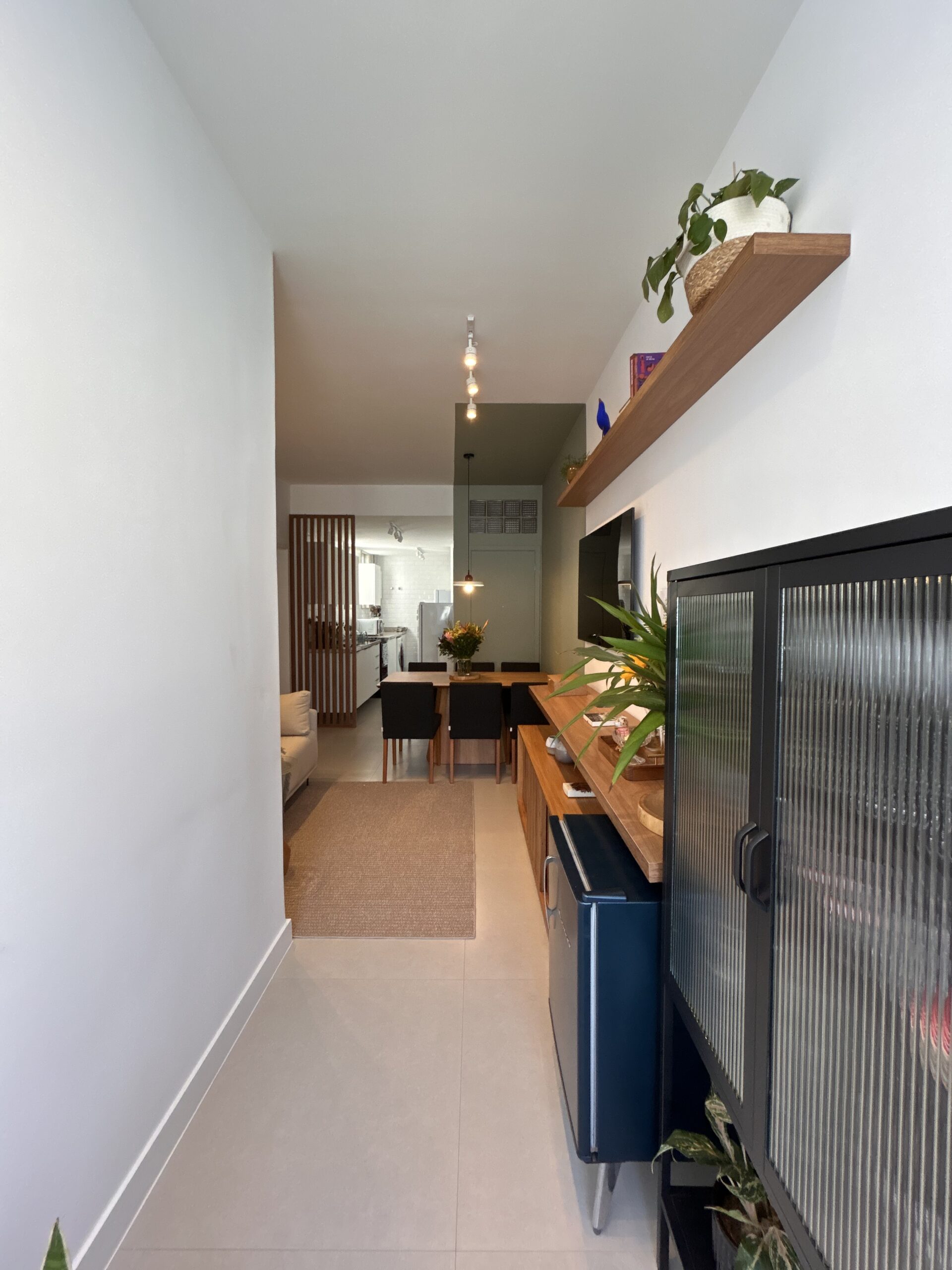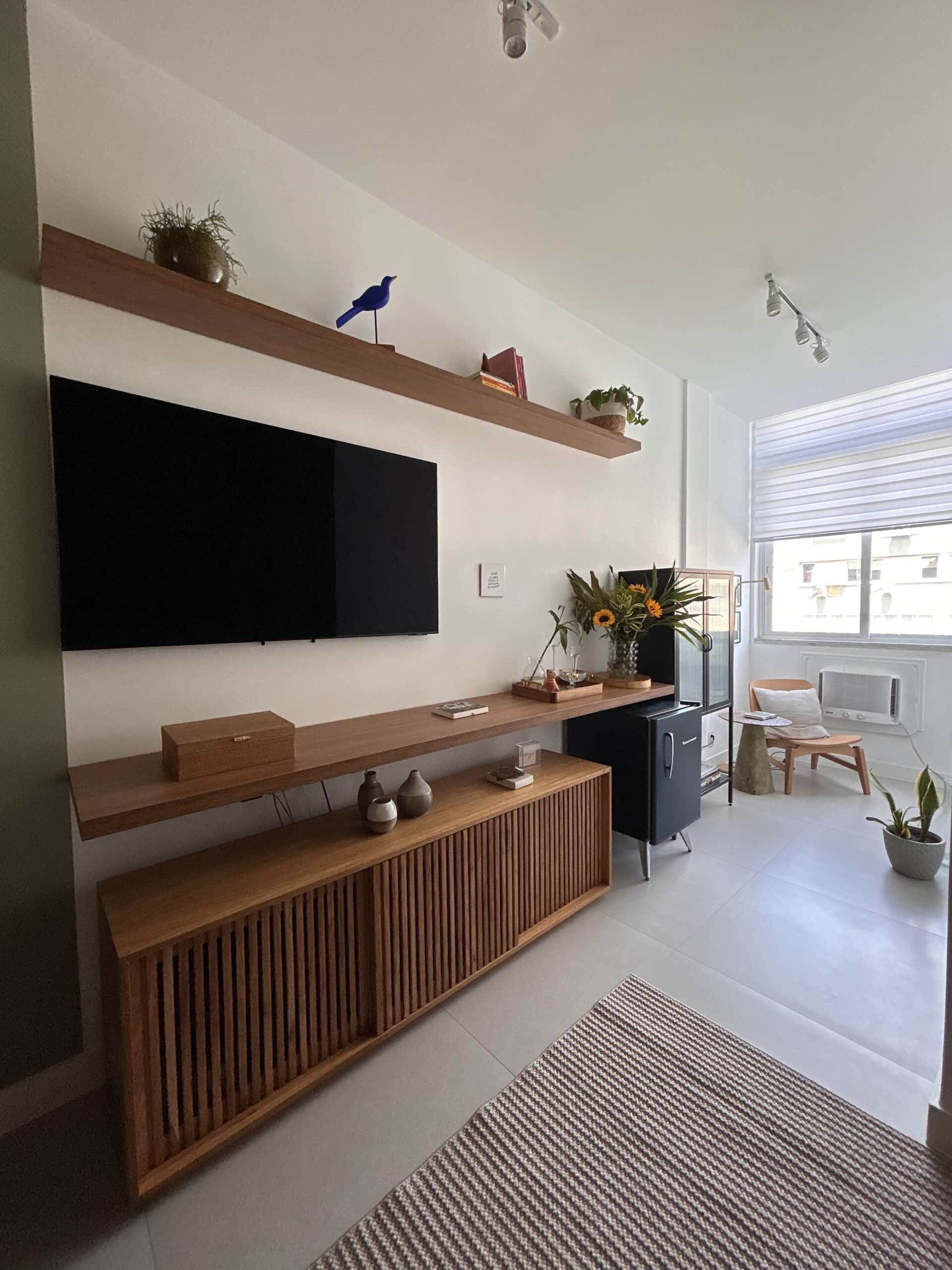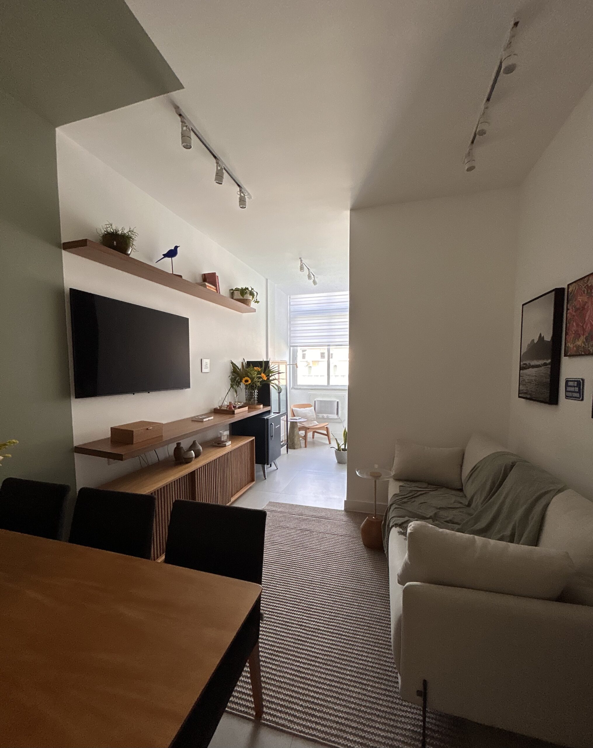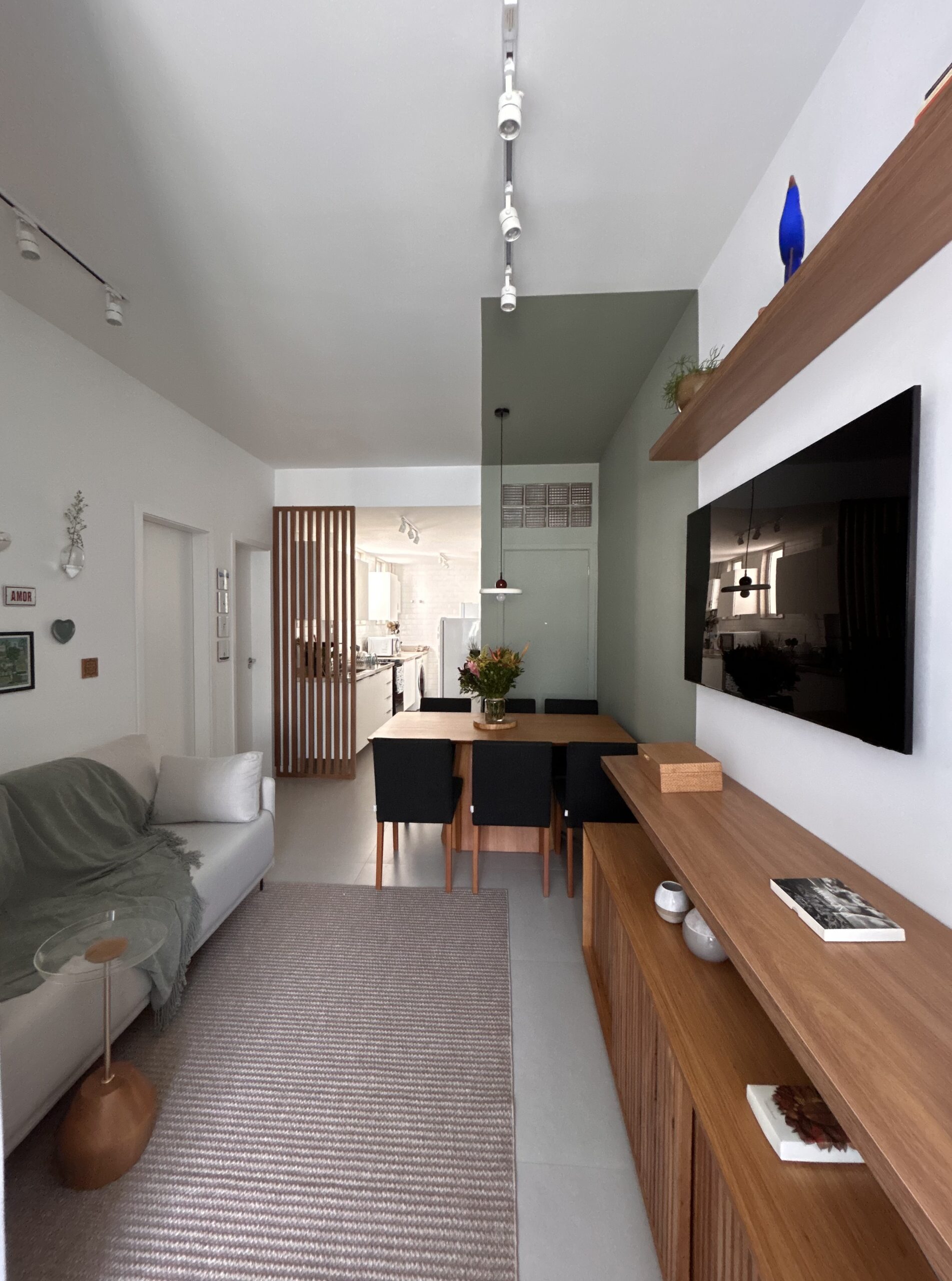 O resultado é uma sala compacta, mas cheia de vida, onde cada escolha reforça a ideia central do projeto: mesmo em espaços pequenos, é possível viver com conforto, receber bem e construir ambientes que contam histórias.
